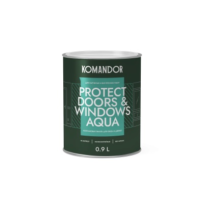 Эмаль для окон и дверей KOMANDOR PROTECT DOORS&WINDOWS AQUA БАЗА A 0,9 Л