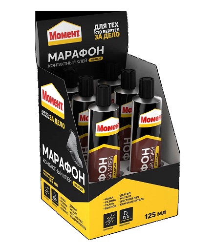 Универсальное применение: Клей Момент МАРАФОН подходит для различных материалов, таких как кожа, резина, текстиль и другие, что делает его идеальным выбором для ремонта различных видов обуви.