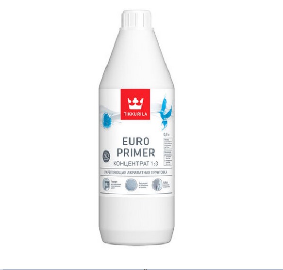 Euro Primer — концентрированный грунтовочный материал, водоразбавляемый, со связующим на основе акрилата и компонентами для защиты от плесени. Используется в качестве укрепляющего поверхности концентрата с эффектом глубокого проникновения. Может применяться для наружных и внутренних работ. Не обладает едким запахом, отвечает требованиям Евросоюза по экологичности грунтовочных материалов.