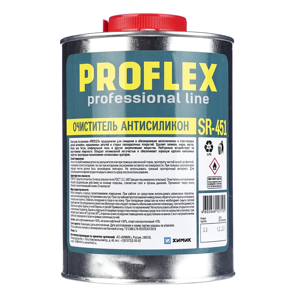 Средство PROFLEX Антисиликон для обезжиривания поверхностей и удаления силикона, масла, жира, бензина, битума, шлифовальной пыли и других загрязняющих веществ.
