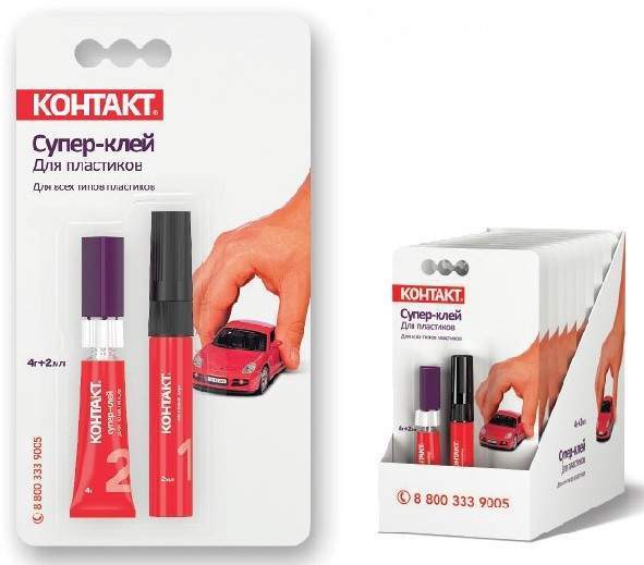 Супер-клей для пластика 4г+ 2мл "КОНТАКТ"шоу бокс, арт. КМ 120 - Б42ПЛ