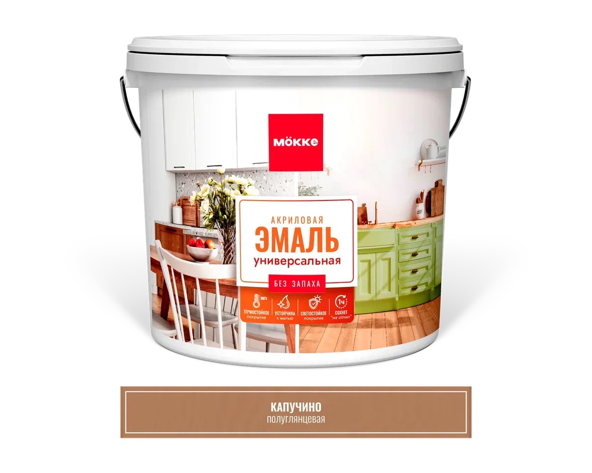 Эмаль акриловая универсальная MÖKKE полуглянцевая КАПУЧИНО 0,8 кг
