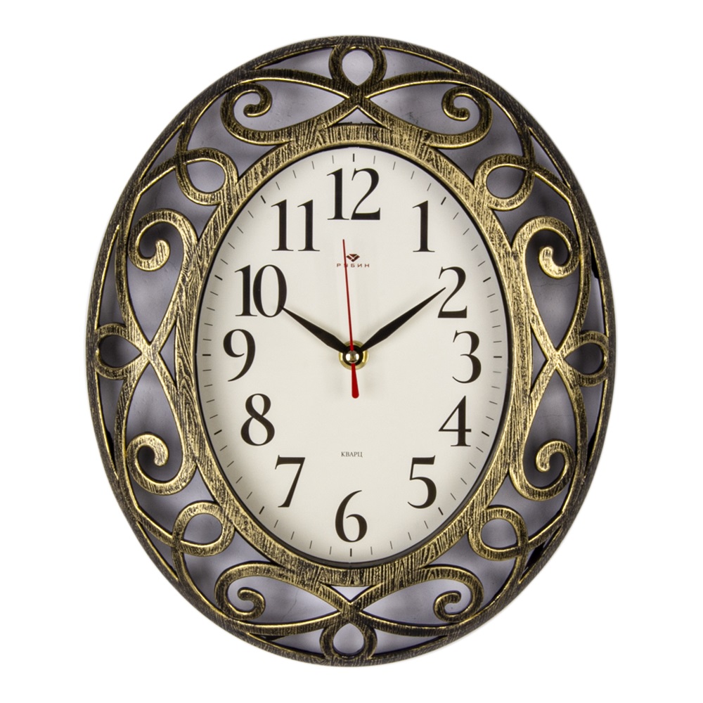 Часы настенные РУБИН Классика 3126-009 Черный/золото овал 31х26cm