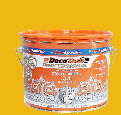 Грунт-эмаль по ржавчине 3в1 алкидная DecoTech RAL1021 желтая 0,9кг