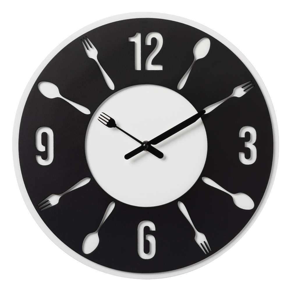 Часы настенные РУБИН Вилка-ложка 3522-002 Белый+черный круг Ø35 cm МДФ