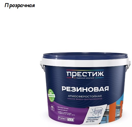 Краска резиновая акриловая Престиж база С 10кг прозрачная