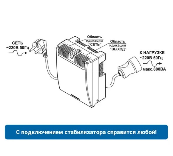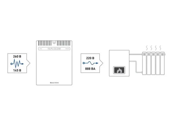 Стабилизатор напряжения TEPLOCOM ST-888. Мощность нагрузки 888 ВА.