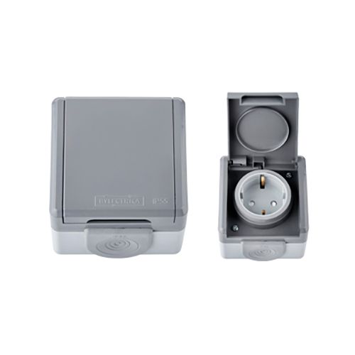 Розетка наружная Bylelectrica IP55 с з/к серая РА16-0152 (03)