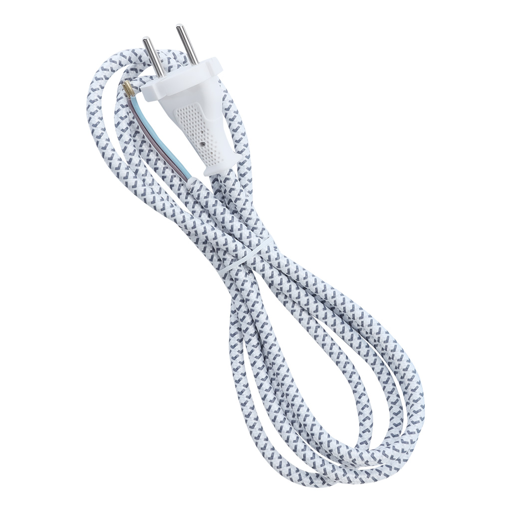 Сетевой шнур с вилкой в тканевой оплетке подходит к любому типу розеток как европейского, так и росс