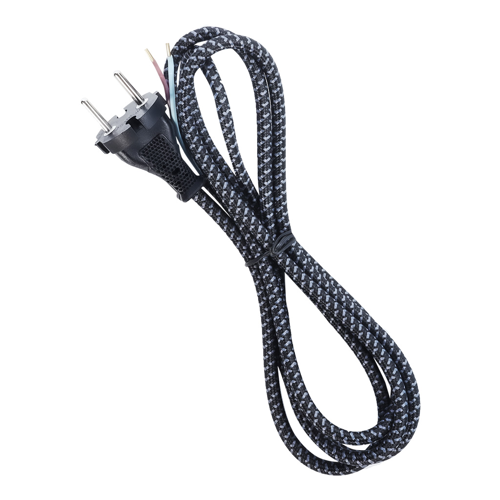 Сетевой шнур с вилкой в тканевой оплетке подходит к любому типу розеток как европейского, так и росс