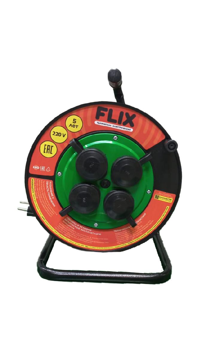 Удлинитель на катушке 4 гнезда с крышками FLIX ПВС 3х1,5 с/з 25А оранжевый 30 м