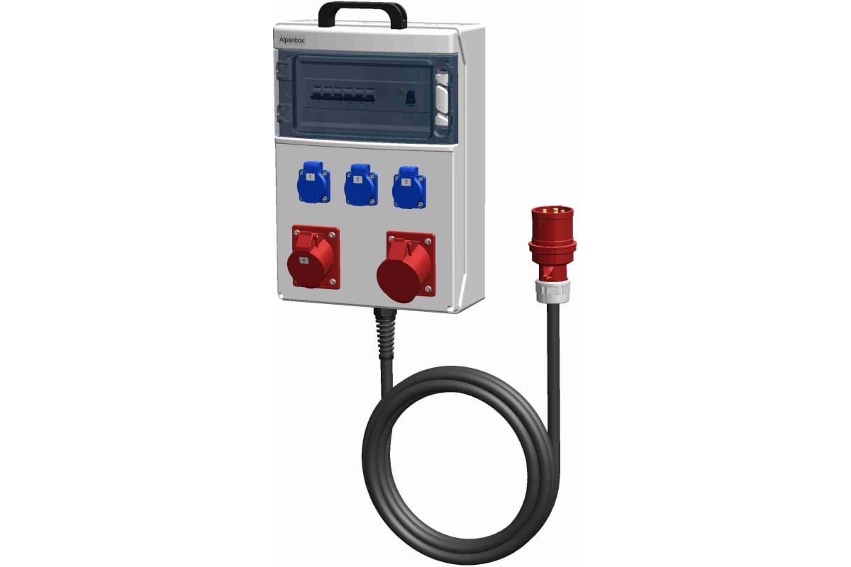 Распределительное устройство ALPENBOX РУСп с комбинацией розеток настенного и переносного монтажа в корпусе из ударопрочного безгалогенного пластика ABS, оснащен системами защиты и контроля. За счет ударопрочного и атмосферостойкого корпуса устройство можно использовать вне пределов помещений, причем в самых сложных погодных условиях. Количество модулей - 12 мест.