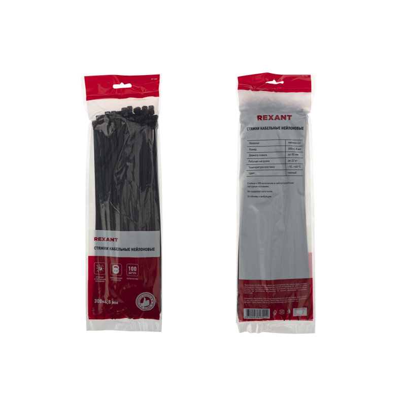 В упаковке поставляются 100 стяжек размером 300x4,8 мм.
