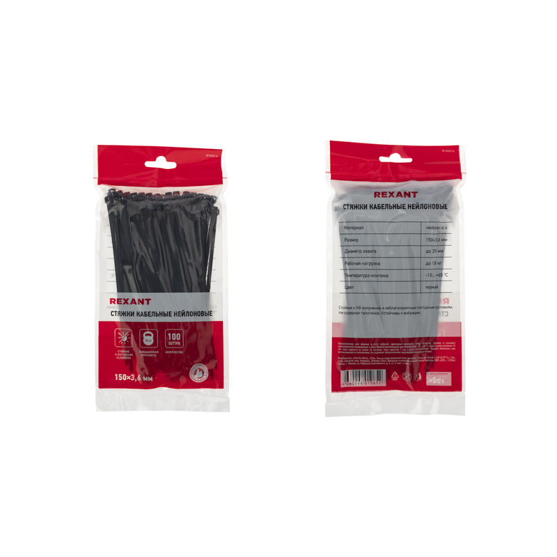 Крепление для кабеля 3,6х150 черный (100шт./упак.) 07-0151-4 REXANT