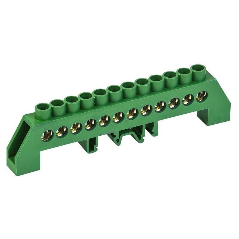 Шина PE в корпусном изоляторе на DIN-рейку 6х9мм 12групп, зелёный REXANT