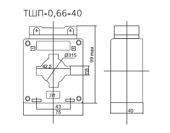 Трансформатор тока ТШП-0,66 0,5 300/5 5ВА, диаметр 40мм DEKraft