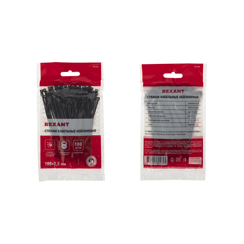 Крепление для кабеля 2,5х100 черный (100шт./упак.) 07-0101 REXANT
