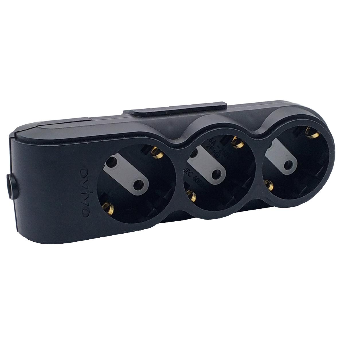 Колодка розеточная 3 гн 2П+З 16А 250В черная OVIVO