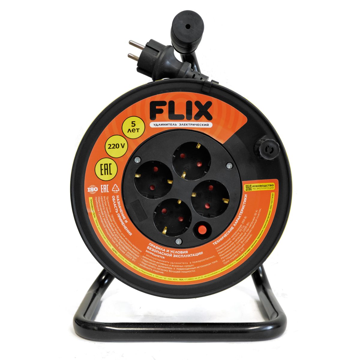 Удлинитель на катушке морозостойкий FLIX с/з 4 гнезда КГТТ 3х2,5 черный 25А 30м
