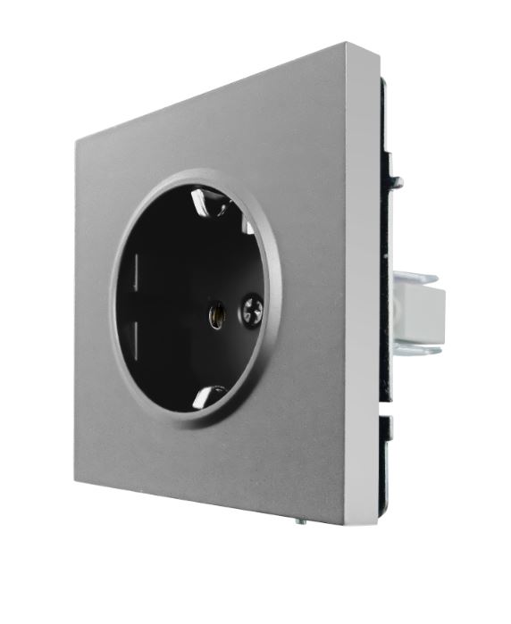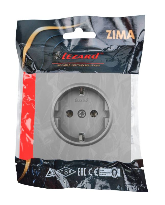 Розетка с/з со шторк механизм серый матовый безвинт зажим 704-7488-124BQC ZIMA