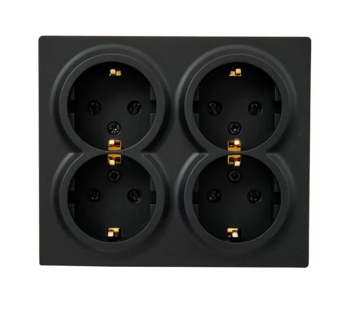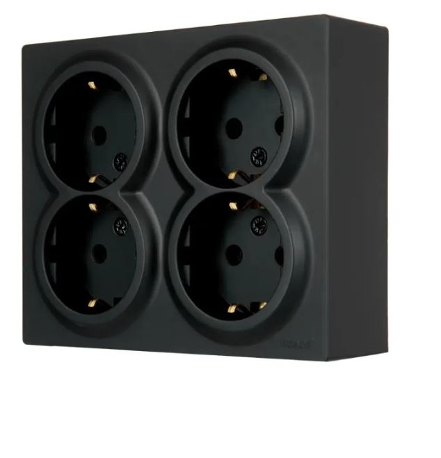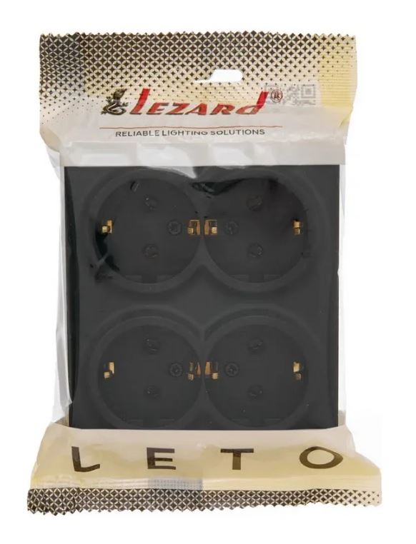 Розетка наружная четверная Lezard LETO с з/к черный бархат 752-4200-127BDP