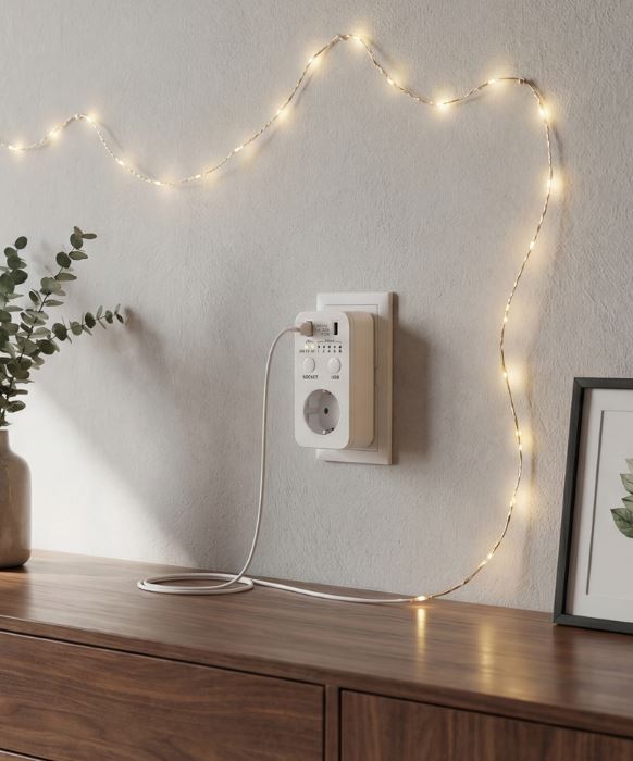 Экономия пространства: совмещает функции розетки-таймера и USB-хаба.