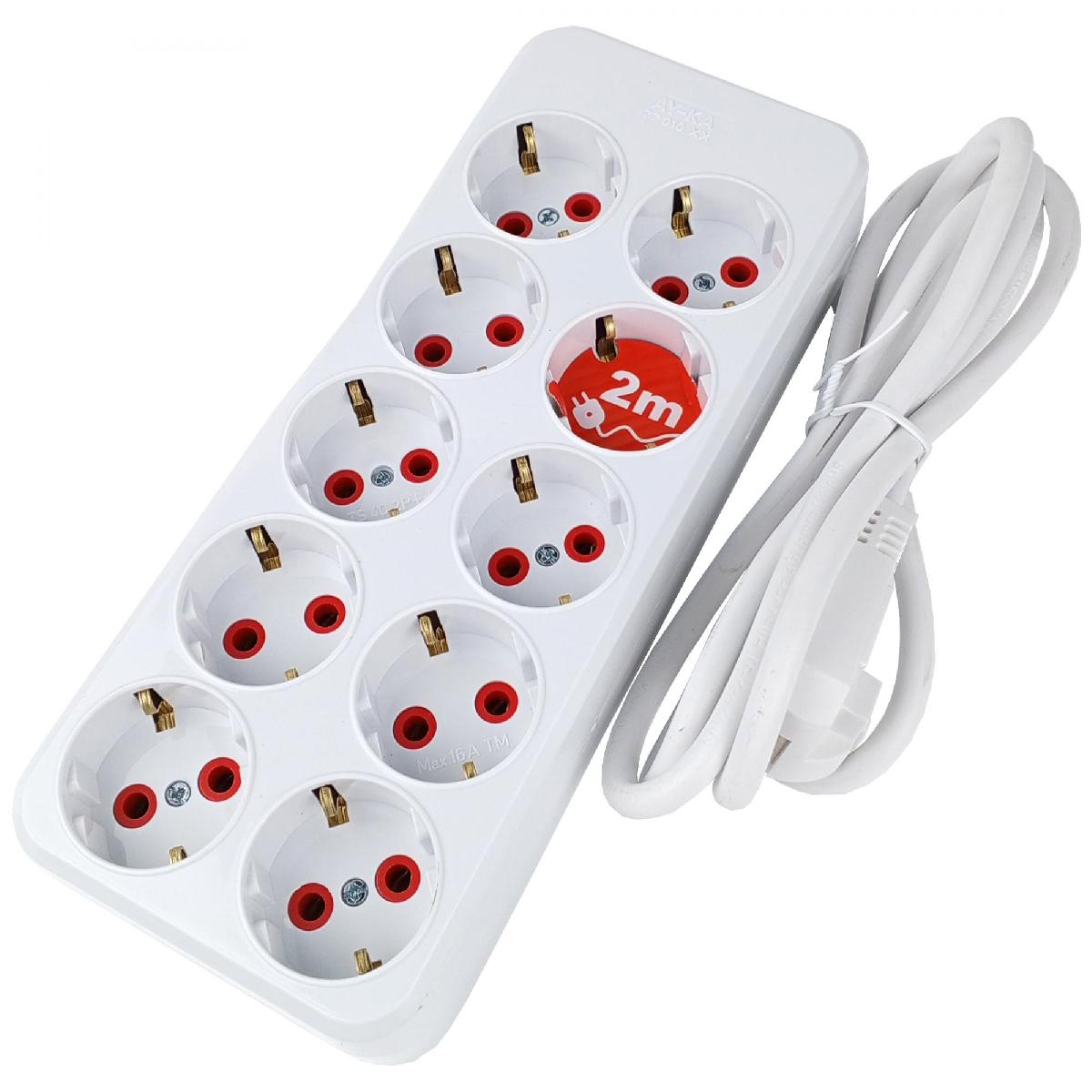Удлинитель AY-KA с/з 10 гн.2м 3х1мм2 16А белый 7701002