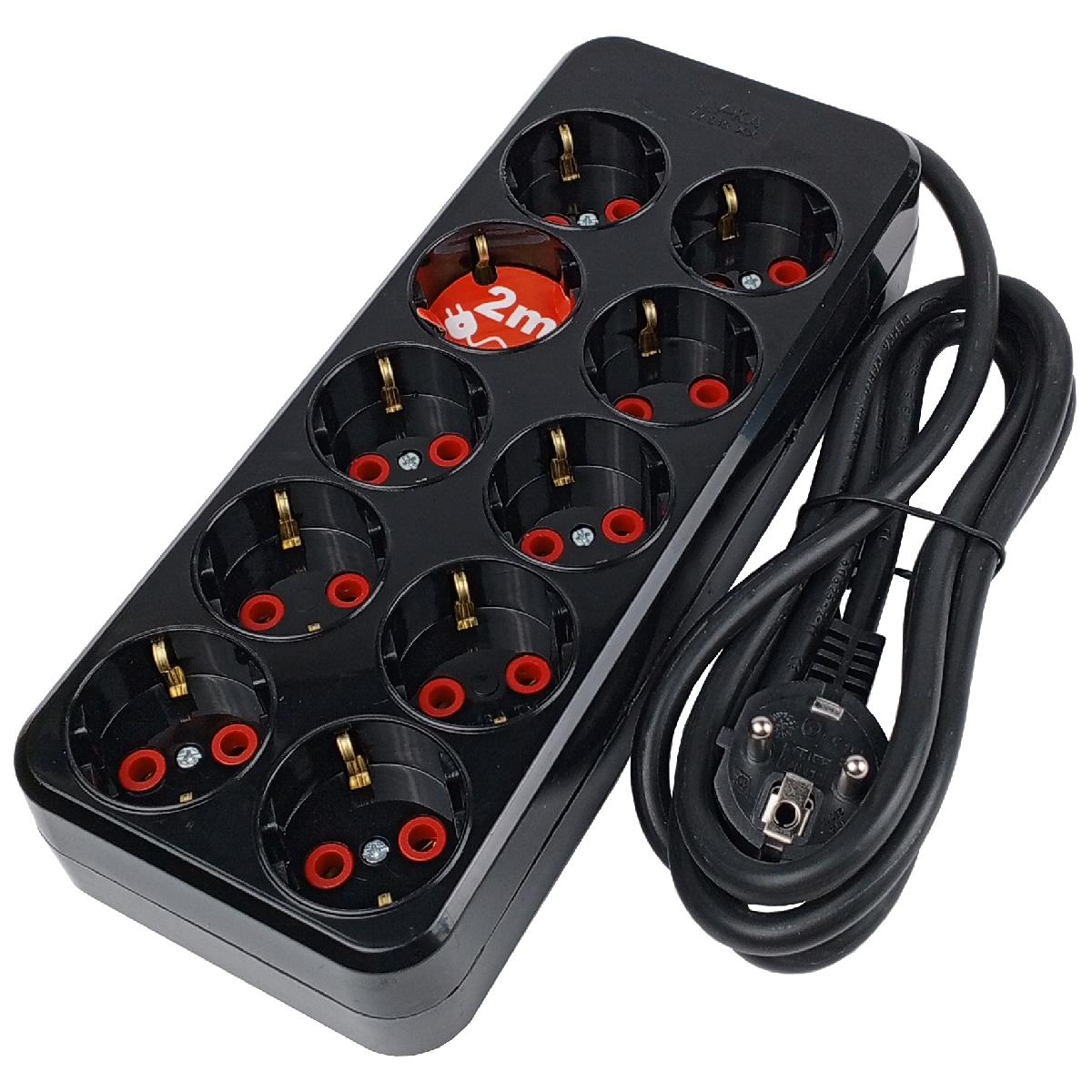 Удлинитель AY-KA с/з 10 гн.2м 3х1мм2 16А черный 7901002