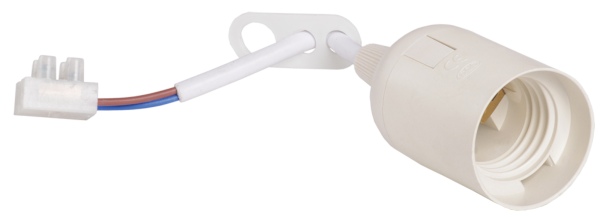 Патрон Е27 пластик подвесной со шнуром с колодкой белый IEK