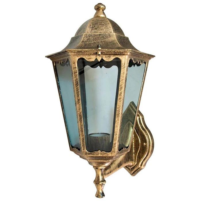 Светильник садово-парковый, серии «Классика», (НБУ) FERON 6201/PL6201 100W, E27, 230V, IP44, цвет черное золото, 6-и гранник, на стену вверх, 255*195*400мм