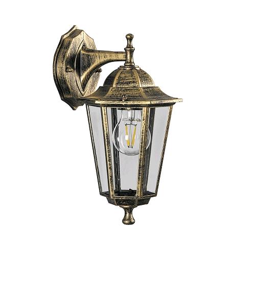 Светильник садово-парковый, серии «Классика», (НБУ) FERON 6202/PL6202 100W, E27, 230V, IP44, цвет черное золото, 6-и гранник, на стену вниз, 255*195*400мм