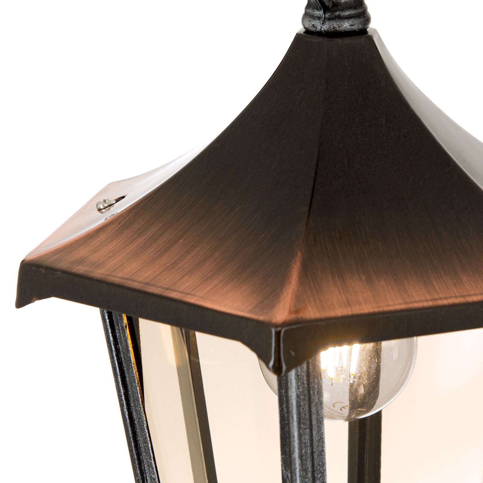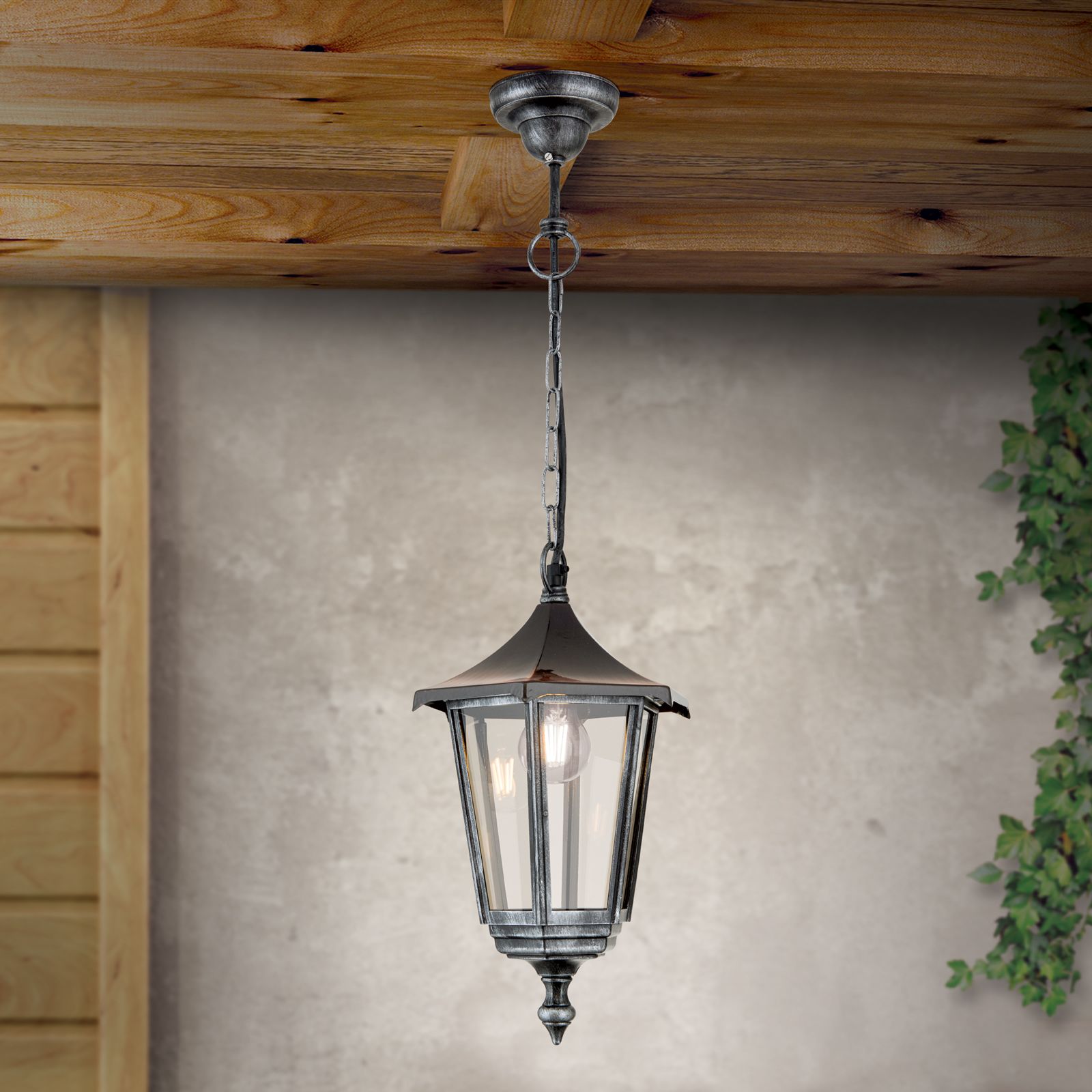 Вневременной уличный светильник HERMINE выдержит любую бурю благодаря каркасу из прочного литого силумина и классу защиты IP43, что делает подвесной светильник очень прочным. Его дизайн впечатляет классическими чертами и деревенским оттенком. Черно-серебристый фонарь венчает колпак медного цвета, напоминающий лампы старых деревенских гостиниц. Чтобы завершить этот образ, лучше всего подходят светодиодные лампы E27 в стиле ретро, хорошо оттененные прозрачным дымчатым стеклом.