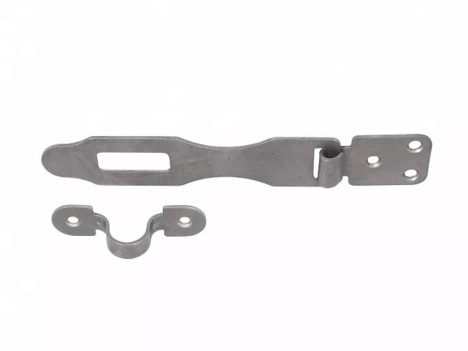 Дверная накладка 140 мм с проушиной для запирания двери, небольших ворот, деревянной калитки с помощью навесного замка. Сделана из стальной полосы, покрытие не нанесено (вариант под покраску). Накладка антивандальная: когда дверь заперта, корпус изделия перекрывает крепежные отверстия, исключая возможность скручивания механизма.