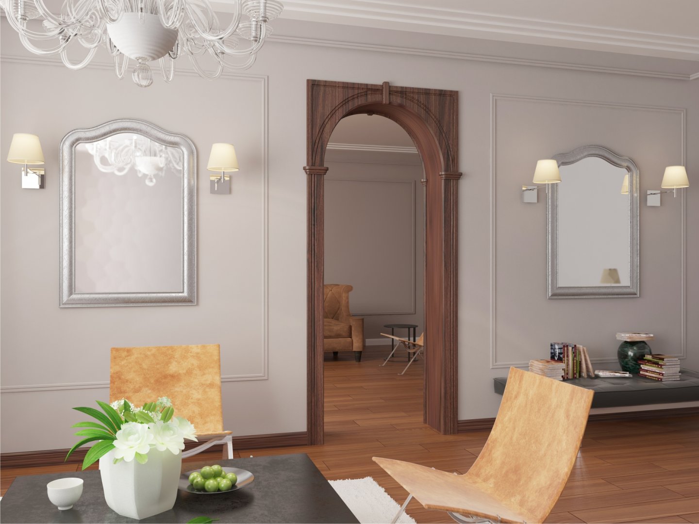 В зависимости от оформления интерьера, можно подобрать арку по форме и исполнению. Подвергаясь стилистическим преобразованиям в различных дизайнерских направлениях, сама арка неизменно остается главной альтернативой межкомнатным дверям. С помощью арки оформляются проемы не только в жилых комнатах, но и в офисных и многих других помещениях.