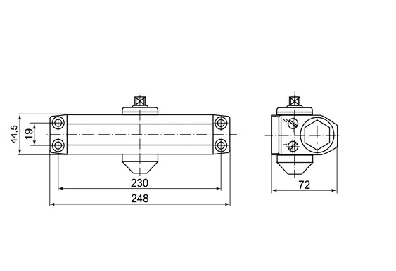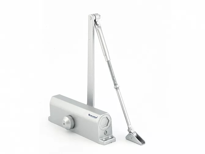 Мощный доводчик под тяжелые двери: усиленные входные, подъездные, цеховые и др. Ограничения: масса полотна – 80-120 кг, габариты – до 1000*2400 мм.