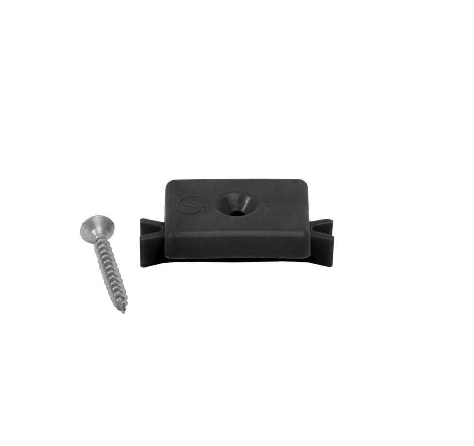 Клипса рядная GRINDERDECO 23х13х42 мм из пластика используется для крепления рядов террасных досок к лагам. Подходит для террасных досок цвета венге и асфальт.