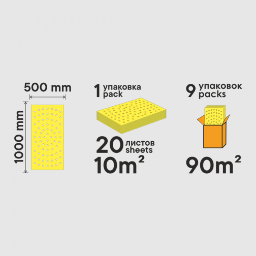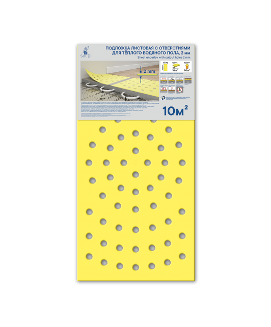 Подложка листовая для теплых полов желтая 2 мм ( 10 м2 в упак )