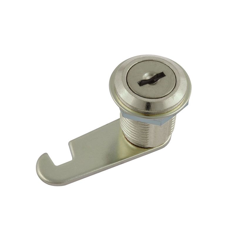 Изготовлен из прочного сплава ЦАМ (цинк, алюминий, медь) и стали, а гальваническое покрытие защищает поверхность от коррозии и износа. Замок оснащён прямой запирающей планкой и выпускается в нескольких размерах с разной длиной резьбы — для различных типов дверец и панелей.