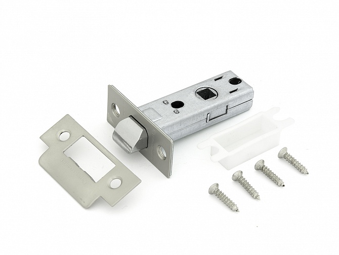 Защелка межкомнатная серии 100. Механизм оснащен металлическим язычком, обеспечивающим максимальный срок службы изделия.