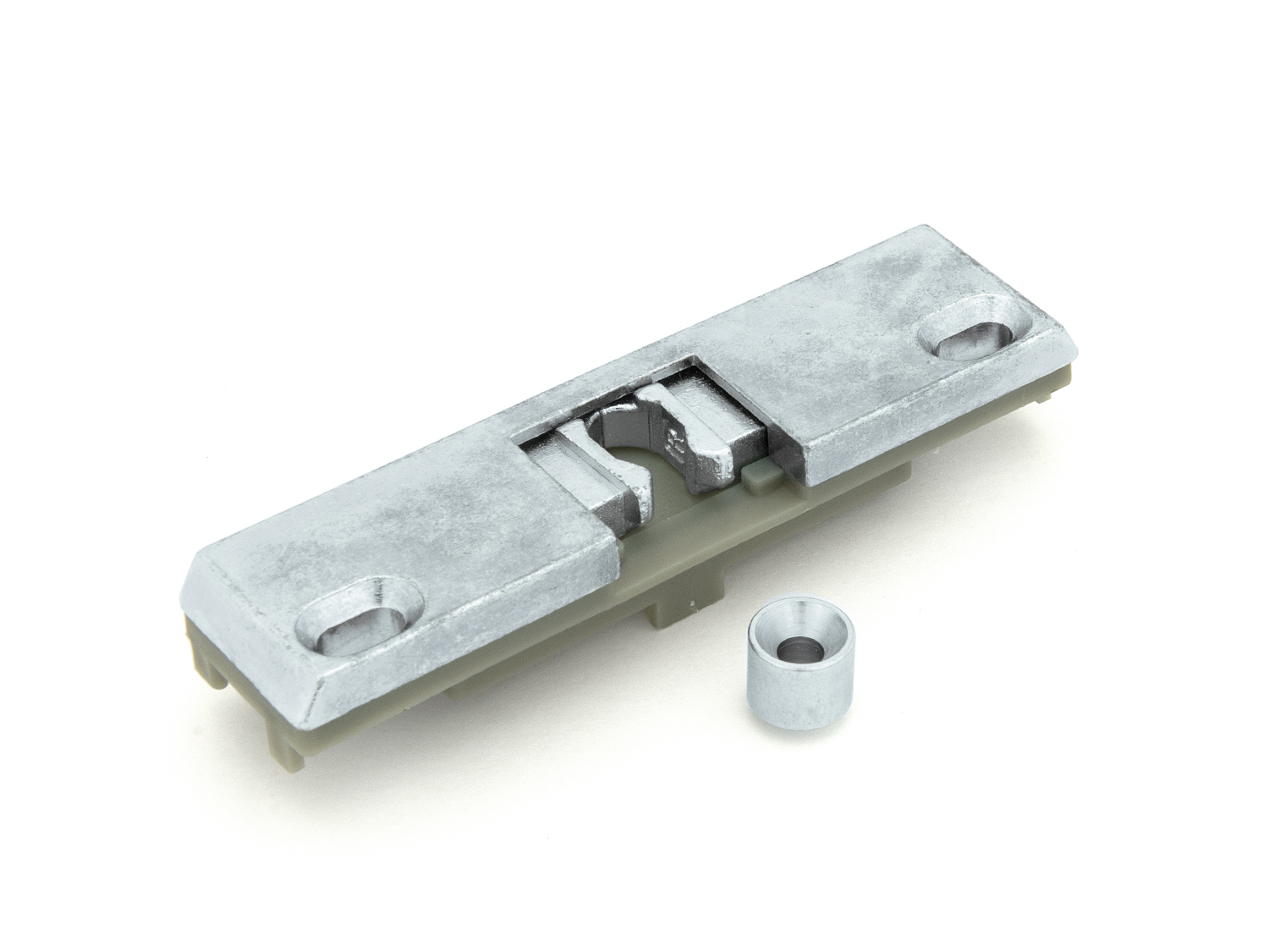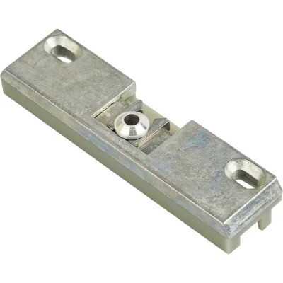— При необходимости можно легко отрегулировать положение защёлки (до 4 мм: за счёт перемещения зажимов внутри паза и смещения корпуса благодаря овальным отверстиям под саморезы),