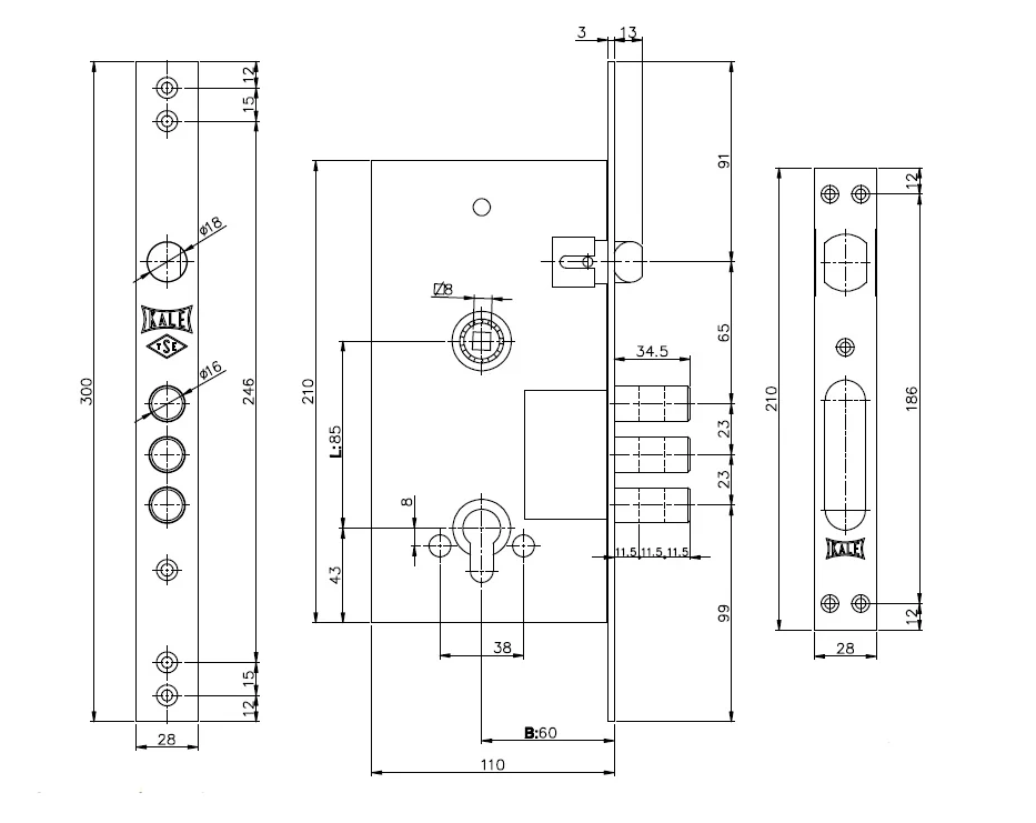 Толщина корпуса замка: 28
