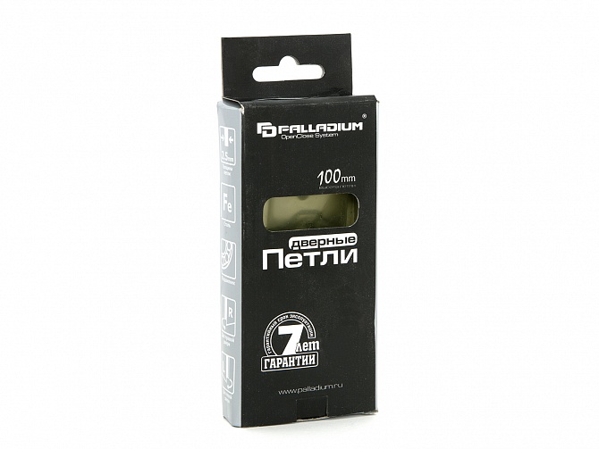 В комплекте: дверная петля накладная Palladium 2BB-100 (1 шт.), шурупы в цвет (8 шт.).