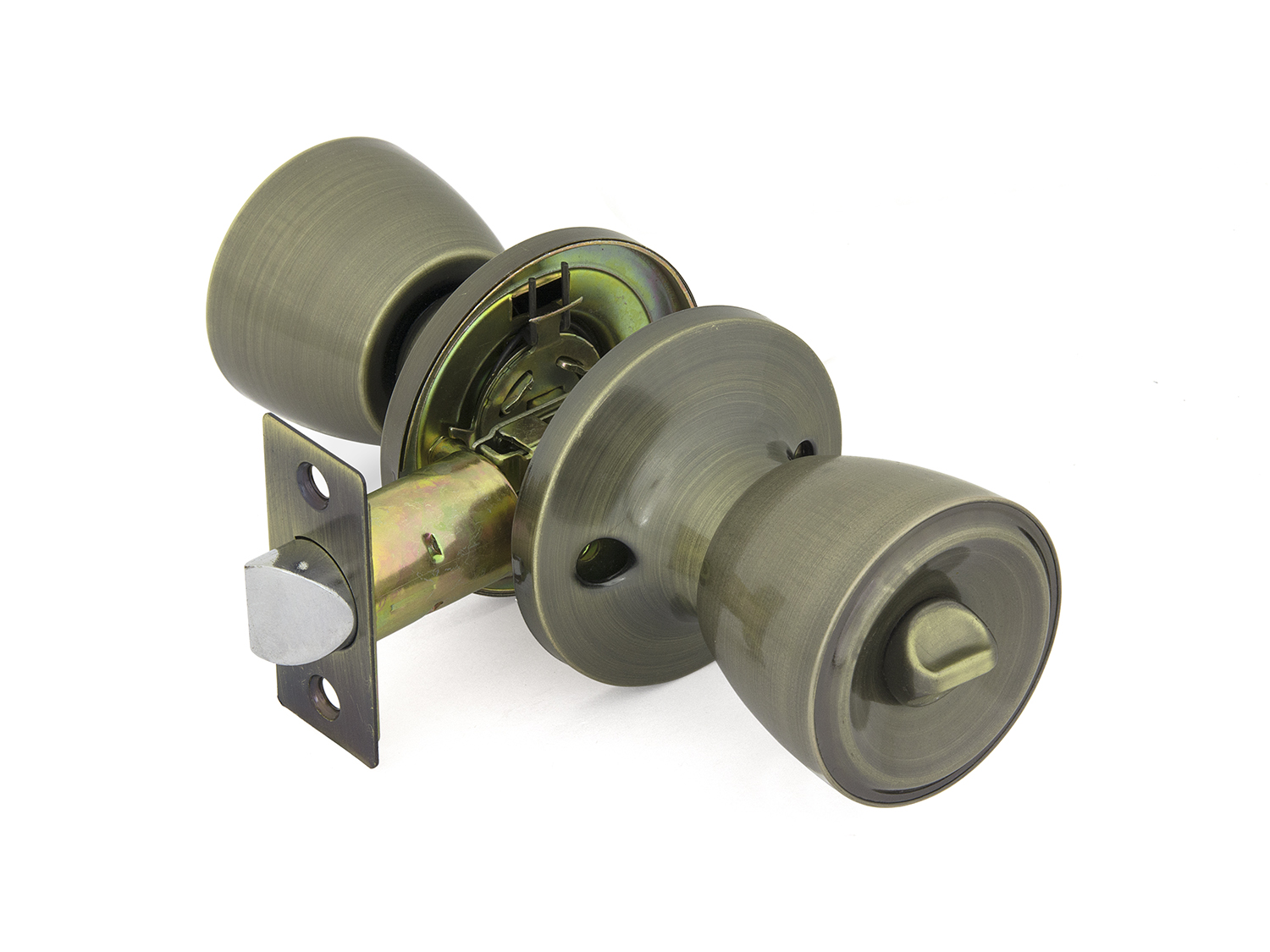 Ручка-защёлка FZ 7072E от «Фабрики замков» — это экономичный и функциональный кноб в форме тюльпана с покрытием под состаренную бронзу (AB) и интегрированным фиксатором (BK).