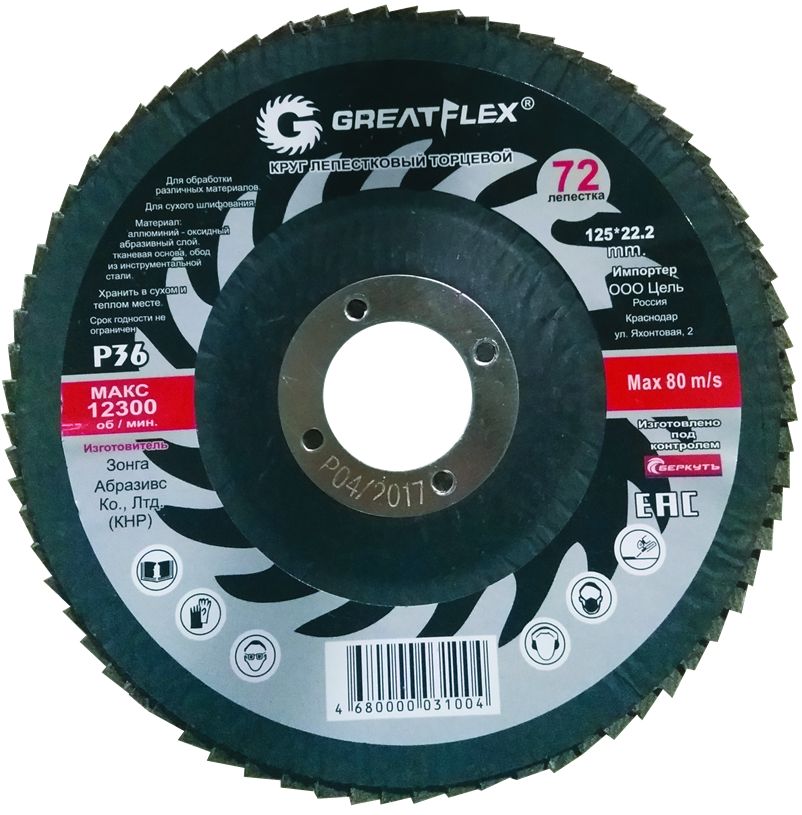 Круг лепестковый торцевой GREATFLEX (72 лепестка): 125 х 22,2 мм, Р100