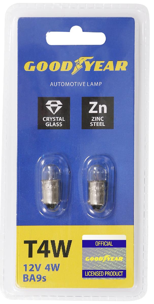 Лампа автомобильная 12V T4W BA9s блистер 2 шт одноконтактная Goodyear