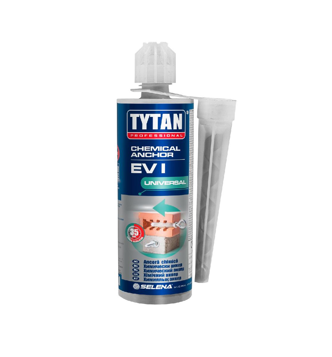 Химический анкер TYTAN PROFESSIONAL EV-I универсальный 165 мл служит для фиксации крепежа в твердые основания, такие как: бетон, натуральный и искусственный камень, пустотелый кирпич, газобетон.
