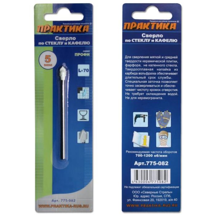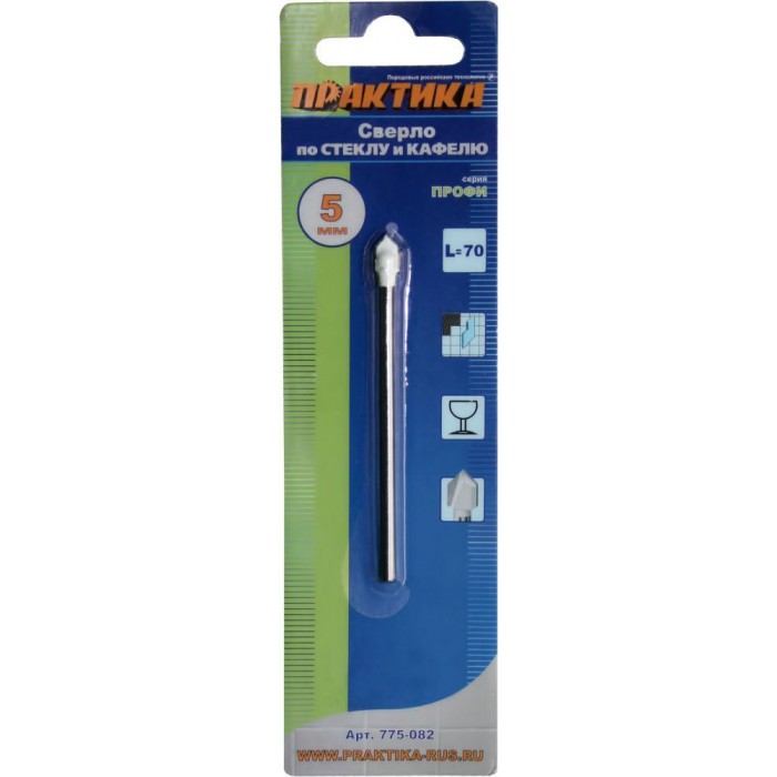 Сверло по стеклу ПРАКТИКА 5 х 70мм Профи
