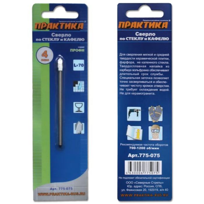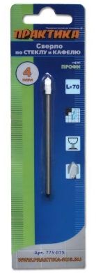 Сверло по стеклу ПРАКТИКА 4 х 70мм Профи