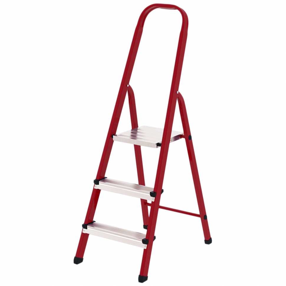 Стремянка подходит как для бытовых, так и профессиональных задач. Большим преимуществом является легкий вес, что позволяет без особых трудностей переносить или транспортировать изделие Прочность стального сплава в сочетании с прямоугольным профилем гарантирует высокие показатели нагрузки при эксплуатации. Большая верхняя оцинкованная площадка с рифлёной поверхностью облегчит работу на высоте (к примеру, держать в руках банку с краской). А широкие ступени с рифлёным (оцинкованным - касается только стальных стремянок) покрытием уменьшат вероятность соскальзывания стопы. За безопасность эксплуатации стремянки отвечают разнообразные пластиковые заглушки. Заглушки на ножках стремянки придают устойчивой стремянке, а заглушки на ступенях предотвращают возможность пораниться острыми краями стального профиля. Высокий поручень стремянки позволяет удобно держаться во время производимых работ. Прочная нейлоновая лента удерживает стремянку в рабочем положении. Высококачественное покрытие порошковой краски защищает стремянку от воздействия внешней среды, что в свою очередь сказывается на долголетии службы (касается только стальных стремянок). Стремянка будет отличным помощником, как в быту, так и в профессиональной деятельности. Двусторонняя клепка соединения "ступень-профиль", защитные наконечники ступеней, высокая дуга безопасности, сменные пластиковые вставки в основании стоек для предотвращения скольжения.