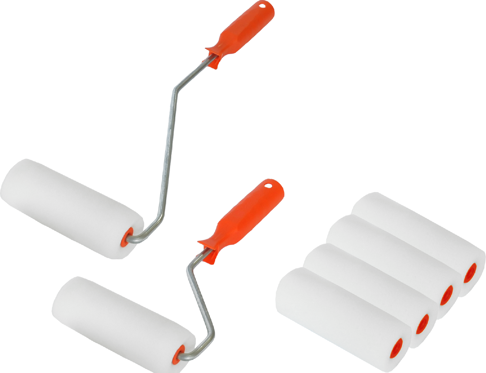 Набор мини валиков 100мм DECOR, валик поролон - 6шт, ручка стандартная, ручка удлиненная